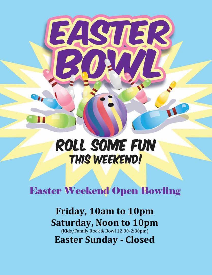 Sunday 12pm to 5pm* * Ever other week that Odd Ball League bowls, Open till 9pm