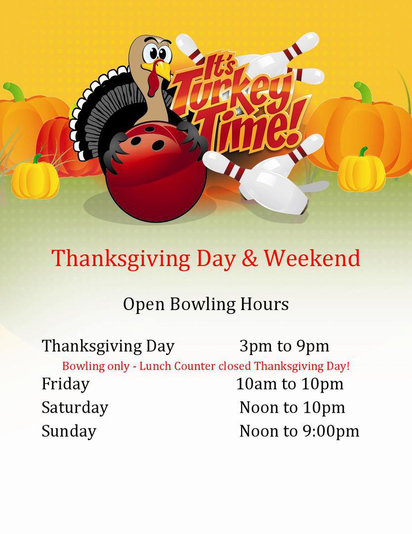 * weeks that Odd Ball League bowls, Open Bowling till 9pm